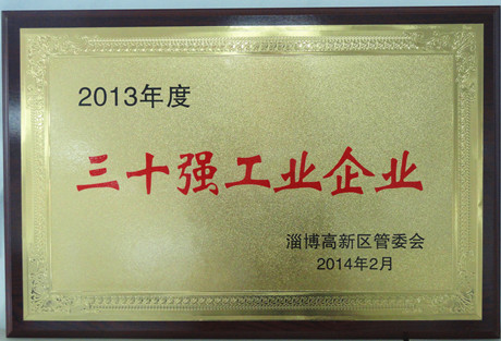 公司被授予“淄博高新區(qū)2013年度三十強工業(yè)企業(yè)”等榮譽稱號