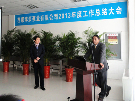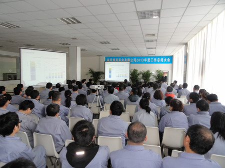 王總在講話中用詳實(shí)的數(shù)字,明晰的圖表,做了細(xì)致地分析和總結(jié)。對2012年之前的工作做了主觀和客觀的原因分析。在2013年的工作總結(jié)中,王總用成績和不足來概括:在2013的工作中,營業(yè)工作取得比較突出的成績,取得了訂單創(chuàng)新高;百萬機(jī)組項(xiàng)目100%容量訂單的簽訂等亮點(diǎn),特別可喜的是,在EPC印尼項(xiàng)目中,鍋爐給水泵、循環(huán)水泵、凝結(jié)水泵一次性簽單,這在公司歷史上乃至行業(yè)中都是很少見的。在生產(chǎn)方面:發(fā)貨臺(tái)數(shù)創(chuàng)公司歷史之最;車間5S管理取得良好進(jìn)展;產(chǎn)品不合格率得到有效控制。在其他方面:公司采購引入比價(jià)采購環(huán)節(jié),降低采購成本;C型泵的改善方面,提高采購批量,降低采購價(jià)格,滿足生產(chǎn)各環(huán)節(jié)的需要。不足之處:營業(yè)方面行業(yè)訂單結(jié)構(gòu)不平衡;生產(chǎn)環(huán)節(jié)中生產(chǎn)秩序的保證、外購件的合格率以及設(shè)計(jì)出圖的時(shí)間有待改善;ERP環(huán)節(jié)錄入數(shù)據(jù)的及時(shí)性、準(zhǔn)確性方面還有待提高等等。