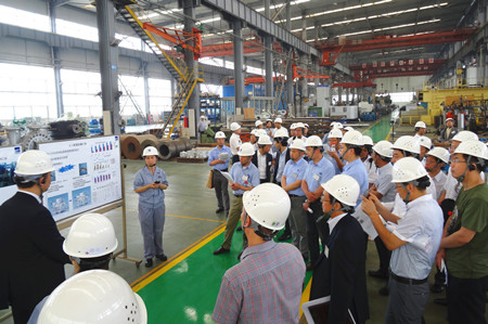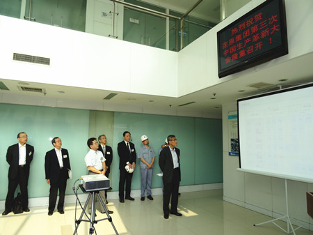 2015年5月26日,荏原集團(tuán)第三次中國(guó)生產(chǎn)革新大會(huì)在我公司召開(kāi)。這次大會(huì),由荏原集團(tuán)在中國(guó)包括臺(tái)灣的八家海外工廠組成,各公司的主要負(fù)責(zé)人及技術(shù)人員共70余人參加了會(huì)議。荏原集團(tuán)風(fēng)水利公司領(lǐng)導(dǎo)大井專務(wù)取締役、小瀉常務(wù)取締役、野路常務(wù)取締役、寺垣常務(wù)及我公司董事長(zhǎng)井上貴雄到會(huì)并講話。