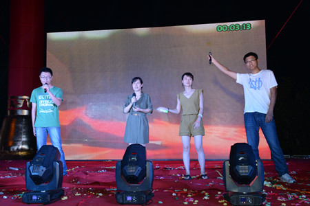17:50分,隨著音樂(lè)慢慢響起,四位晚會(huì)主持人:霍宏越、劉萌、李麗子、董漢峰,以獨(dú)特新穎的方式亮相舞臺(tái),拉開(kāi)了晚會(huì)的序幕。